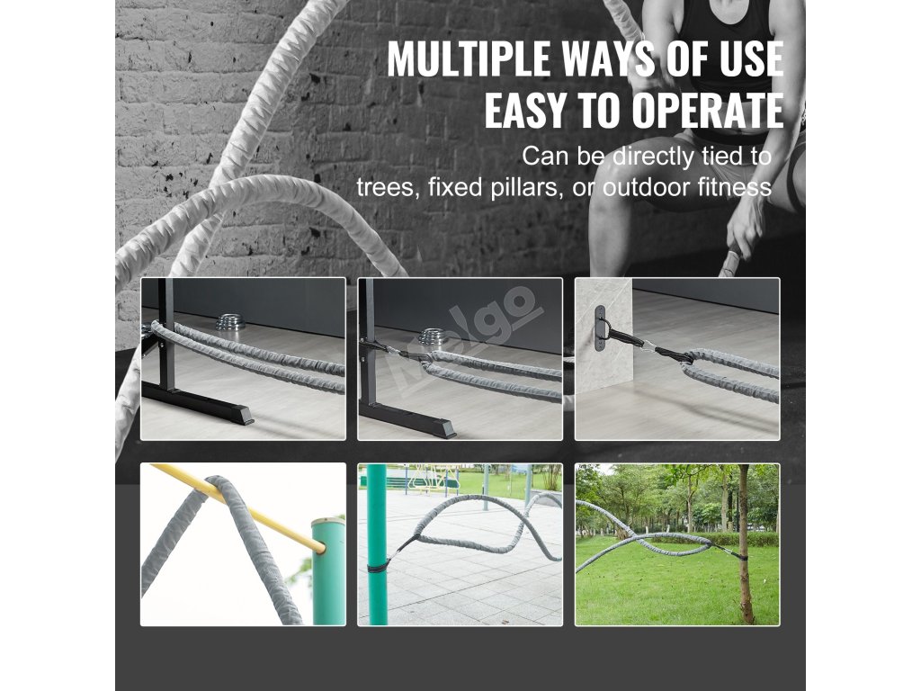 Naše cvičební lano je bezpečné pro muže i ženy všech úrovní fyzické zdatnosti. Delší lana váží více a poskytují náročnější trénink.