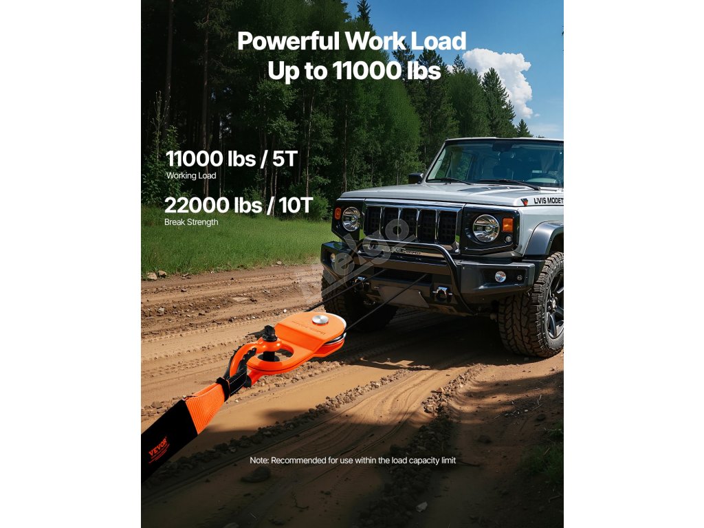 Tento blok zvládne pracovní zatížení až 11 000 liber (5T) a pevnost v tahu 22 000 liber (10T). Je ideální pro těžké úkoly, jako je vyprošťování vozidel a vytahování stromů, a svou práci odvede snadno a efektivně.
