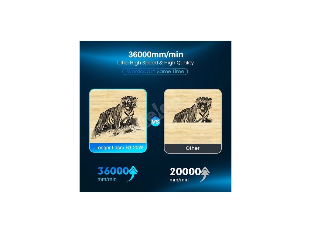 Laser B1 je vybaven novou 32bitovou základní deskou, která umožňuje rychlost gravírování až 36 000 mm/min, což je čtyřikrát více než u běžných laserových gravírek. Kromě toho jsou použity tiché ovladače TMC2209, které účinně snižují provozní hluk a zajišťují rychlejší a příjemnější zážitek.