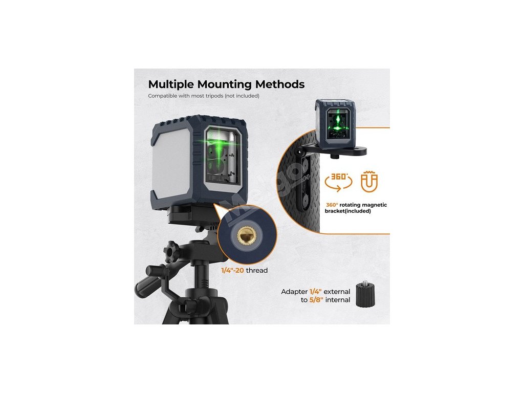 Lehký a přenosný laserový přístroj, který potřebujete. Je ideální pro interiérové dekorace a kutilské projekty, jako je zavěšování obrazů, pokládání dlaždic, vyrovnávání dveří a oken a slavnostní dekorace. Díky minimálnímu jasu, který vydrží až 28 hodin, je ideální volbou pro kutily.