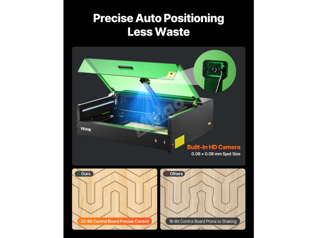 Popusťte uzdu své kreativitě díky pracovní ploše 19,7 x 12,6 palce a rychlosti gravírování 36 000 mm/min. Prořízněte 0,3 palce basového dřeva na jeden průchod a dosáhněte jemných detailů pomocí modrého laserového bodu 0,08 x 0,08 mm. Je vybaven laserem třídy 1 a podporuje technologie LaserGRBL, LightBurn (placená) a BurnLab.
