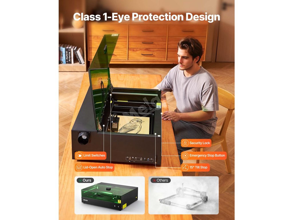Tento laserový řezací a gravírovací stroj umožňuje i začátečníkům rychle reagovat a minimalizovat rizika při práci.