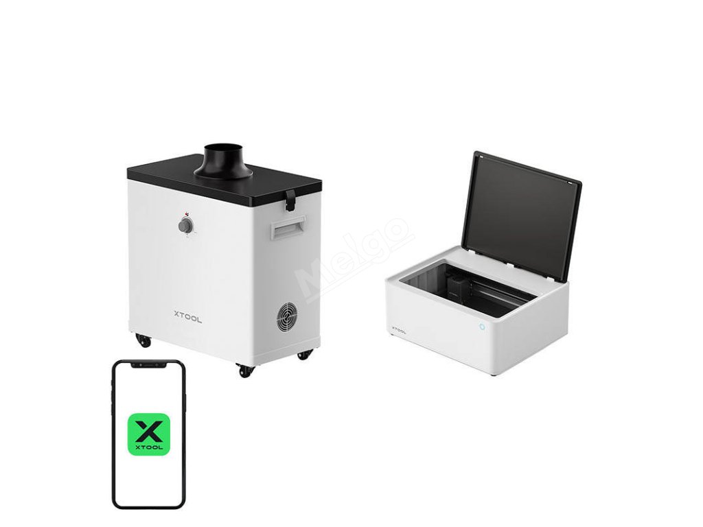 Sadu doplňuje čistič kouře xTool, který díky pokročilému filtračnímu systému odstraní 99,97 % škodlivých částic a zápachu. Třívrstvý filtr, zahrnující HEPA filtr a filtr s aktivním uhlím, zajišťuje optimální pracovní podmínky a odstraňuje škodliviny ze vzduchu při řezání a gravírování. Jeho praktická kolečka umožňují snadné přemístění čističky na místo, kde je potřeba