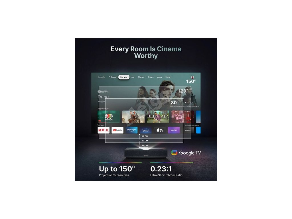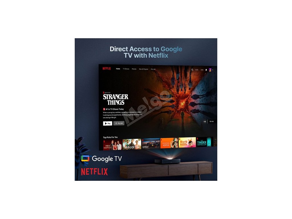 Přímý přístup ke službě Google TV s Netflixem znamená, že můžete sledovat všechny své oblíbené pořady a filmy přímo z projektoru a minimalizovat používání externích zařízení.