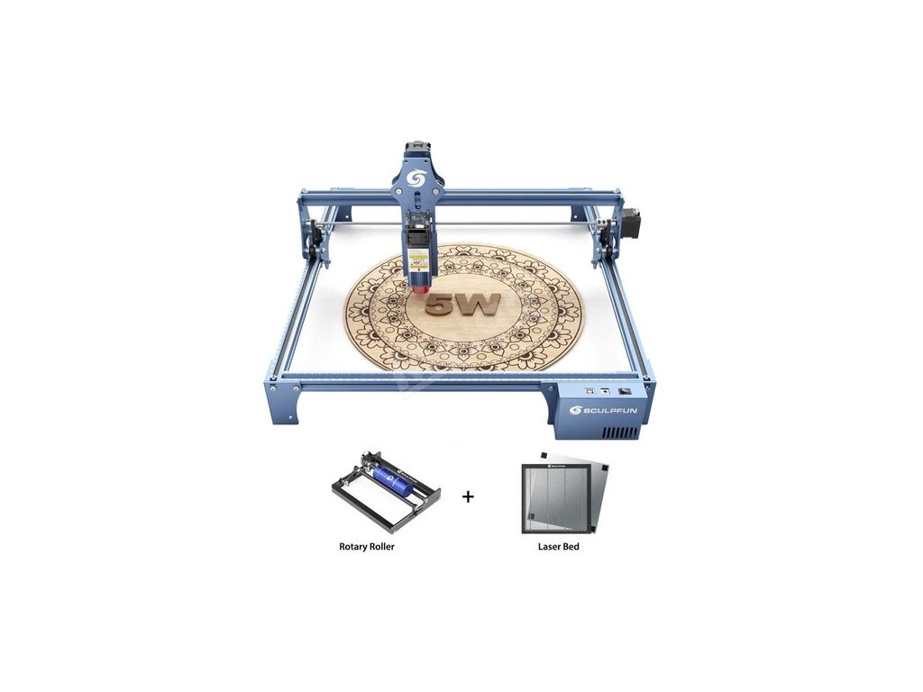 Laserový rytec SCULPFUN S9 5,5W s lůžkem a rotačním válcem