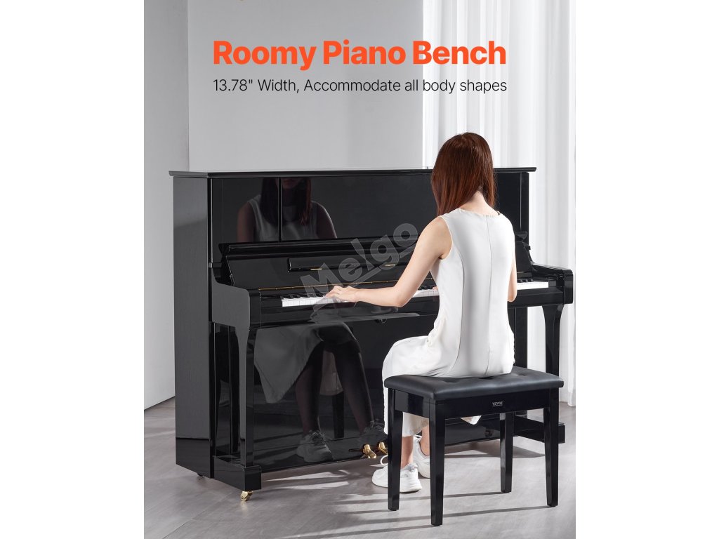 Tato klavírní lavice je navržena tak, aby byla pohodlná, má široký sedák a čalouněný polštář. Je vybavena velkým úložným prostorem pro pohodlné uložení not a příslušenství. Díky protiskluzovým gumovým podložkám na základně je lavice stabilní na hladkých podlahách.