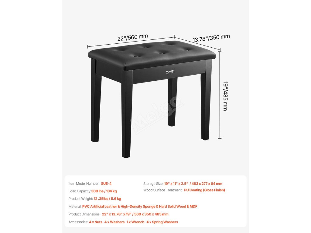 22" x 13,78" x 19" Klavírní lavice s úložným prostorem