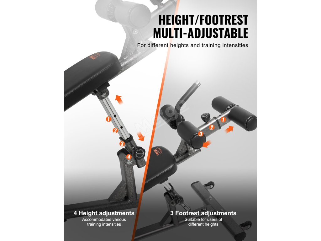 Díky několika výškovým nastavením a nastavitelné délce háku na nohy se tato sedací lavice přizpůsobí uživatelům všech velikostí pro různé úrovně intenzity. Zaměřuje se na více svalových skupin pro procvičení celého těla, což z ní činí všestranné a praktické fitness vybavení pro každou domácí posilovnu.