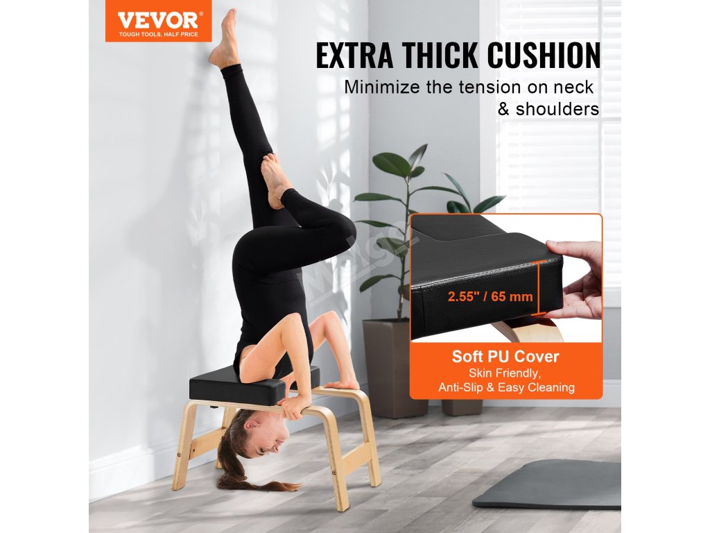 Jógová lavice pro stoj na hlavě je vybavena polštářem o tloušťce 2,55" (65 mm), který je navržen tak, aby snižoval zatížení krku a ramen.
