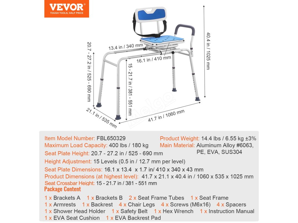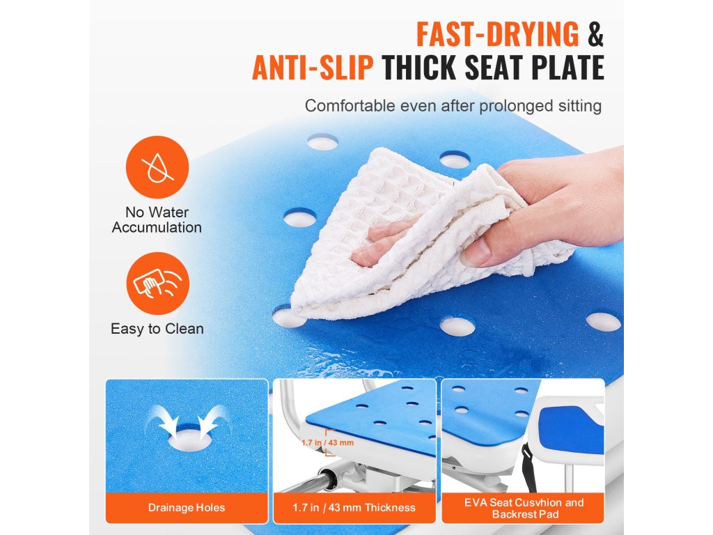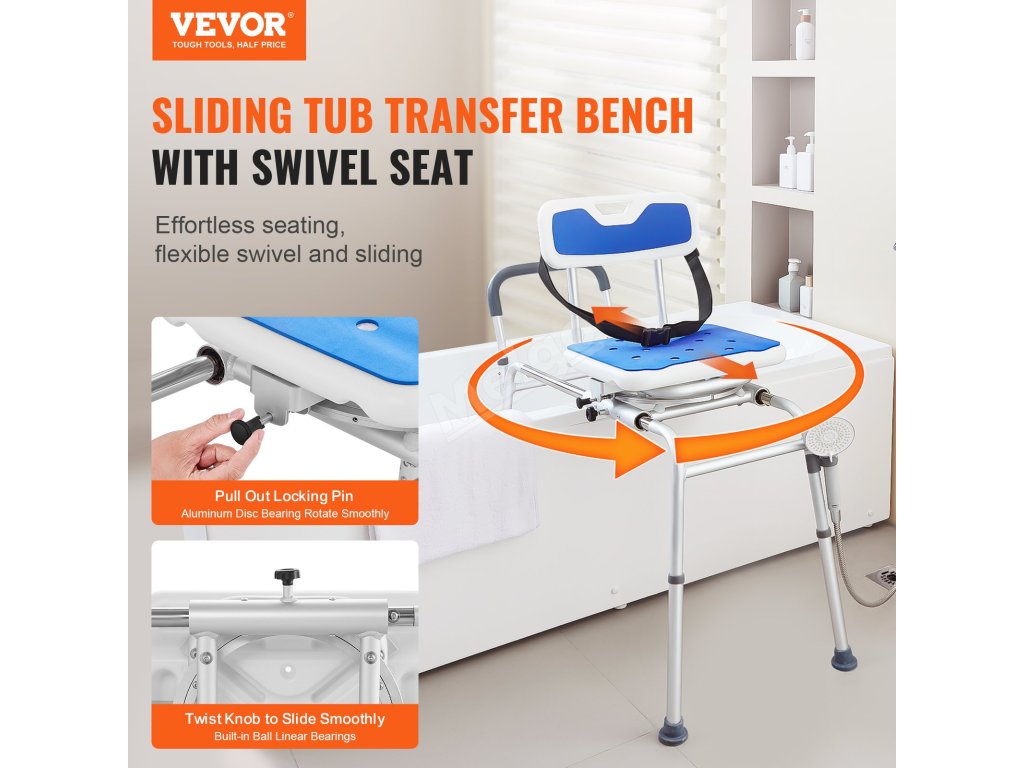 S posuvnou lavicí VEVOR bude vaše sprchování bezpečnější a pohodlnější. Tato lavice pro přesun do vany, která je ideální pro seniory, zdravotně postižené a těhotné ženy, je vybavena hladce posuvným sedadlem otočným o 360°, 15 nastavitelnými výškami a oporou 400 liber pro maximální pohodlí.