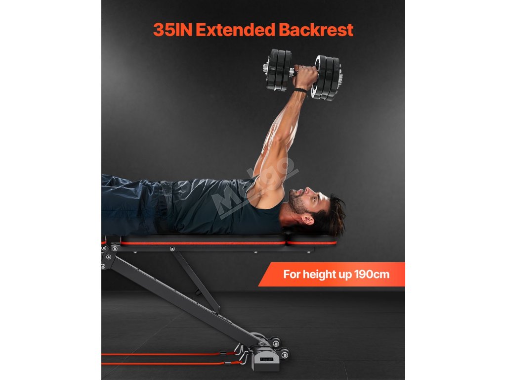 Nastavitelné opěradlo a další moduly se přizpůsobí různým cvikům a výškám postavy. Ať už provádíte cviky na nohy, záda, hrudník, břicho, ramena nebo paže, tato lavice umožňuje procvičit celé tělo. Prodloužená opěrka zad poskytuje dodatečné pohodlí a ochranu páteře.