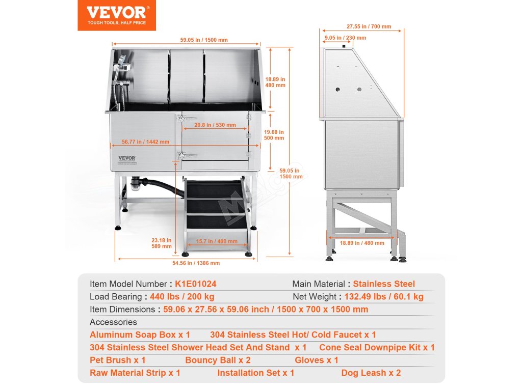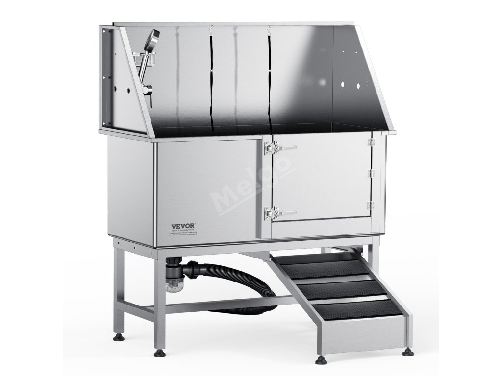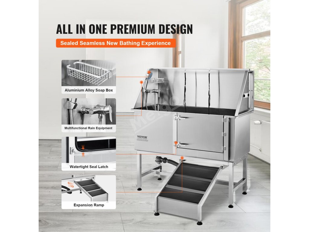 Lázeňská stanice pro psy 62" nerez s rampou, boxem na mýdlo, pravé