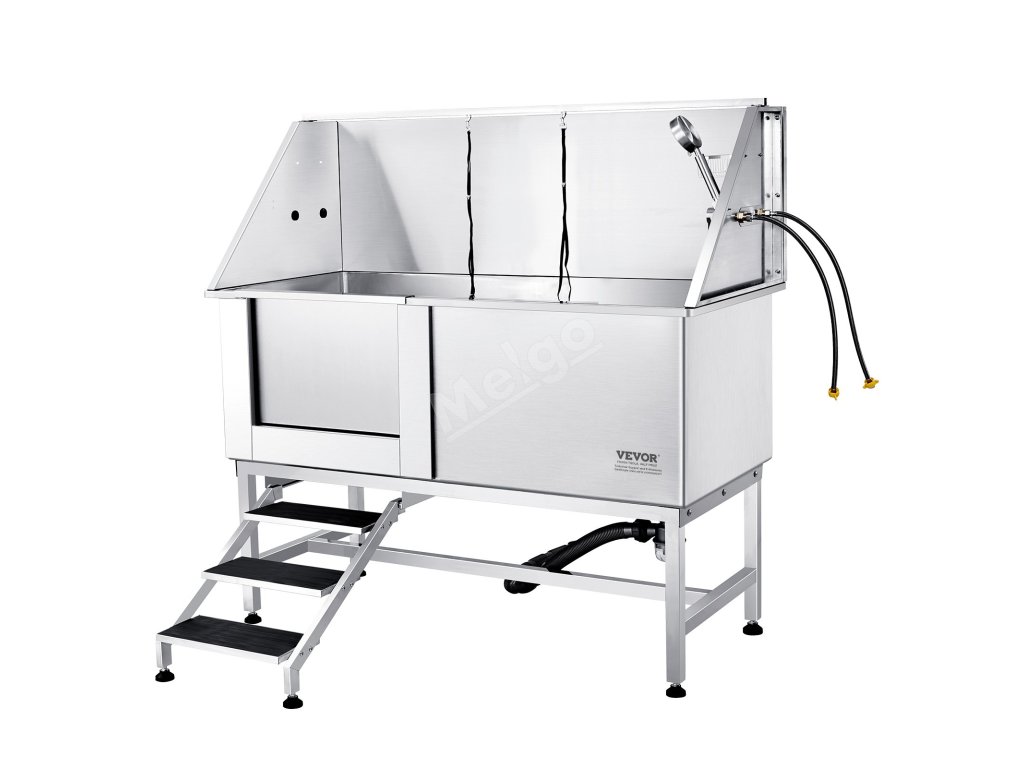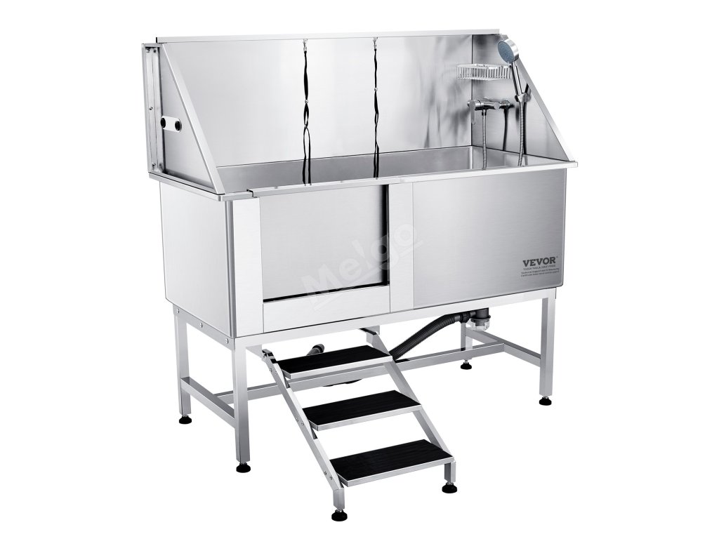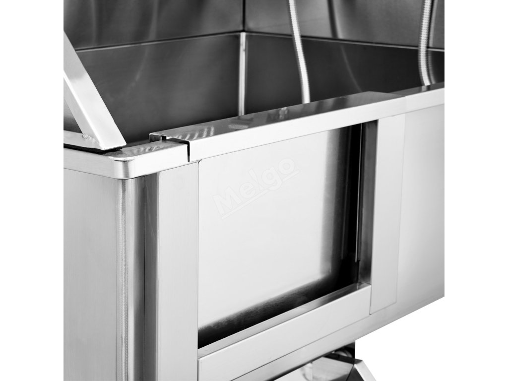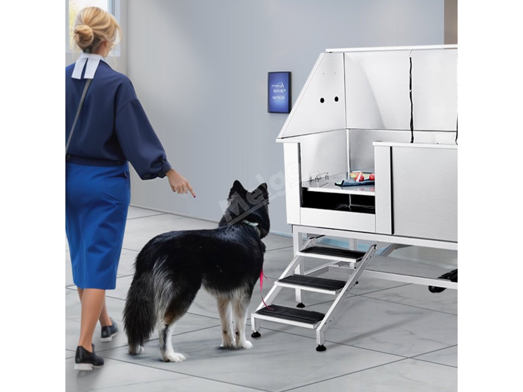 Lázeňská vana pro psy 1.57M nerez se schody, baterie a zásobník levé