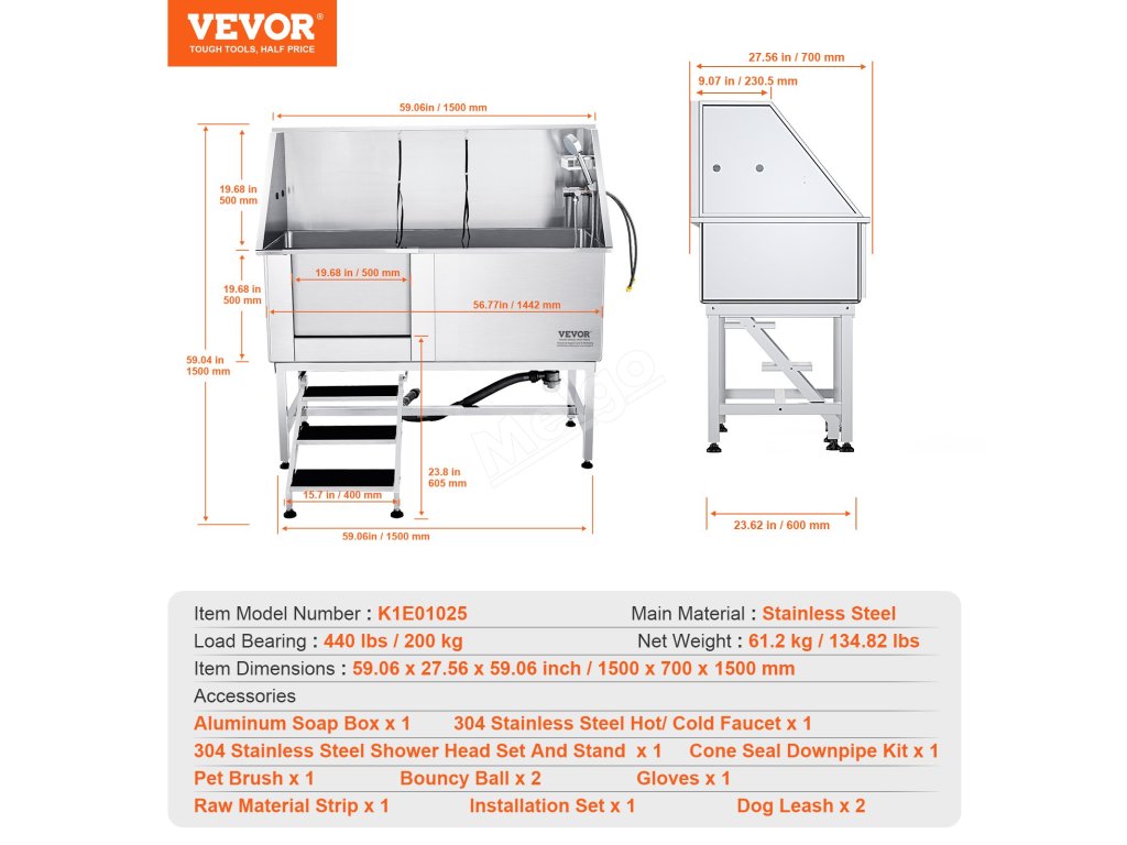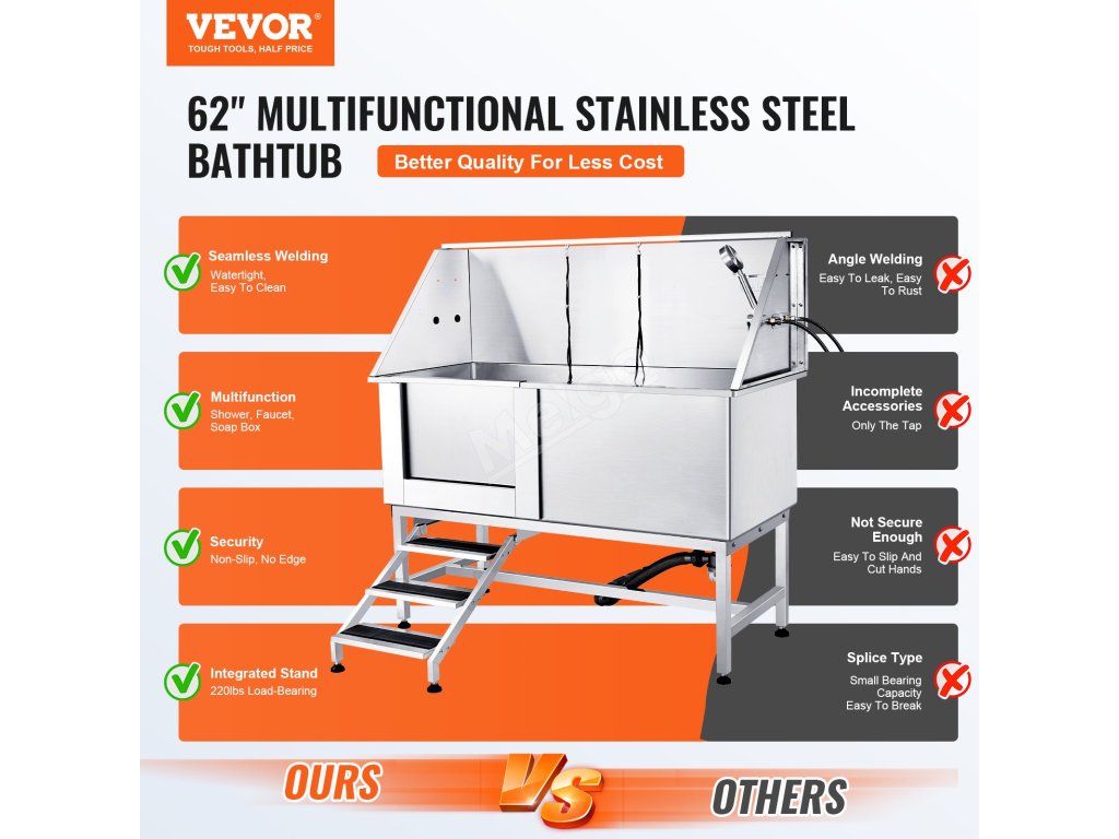 Vhodná pro domácí zvířata do velikosti 62 palců a hmotnosti až 440 liber. Bezešvý svařovaný rám pro netěsnící konstrukci, vyrobený z nerezové oceli pro odolnost proti korozi a trvanlivost, což zajišťuje dlouhodobé používání.