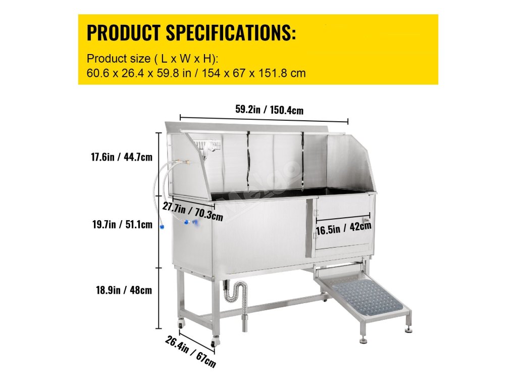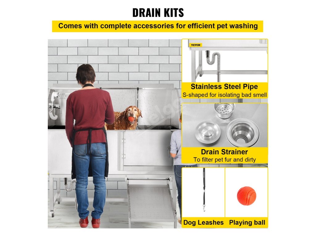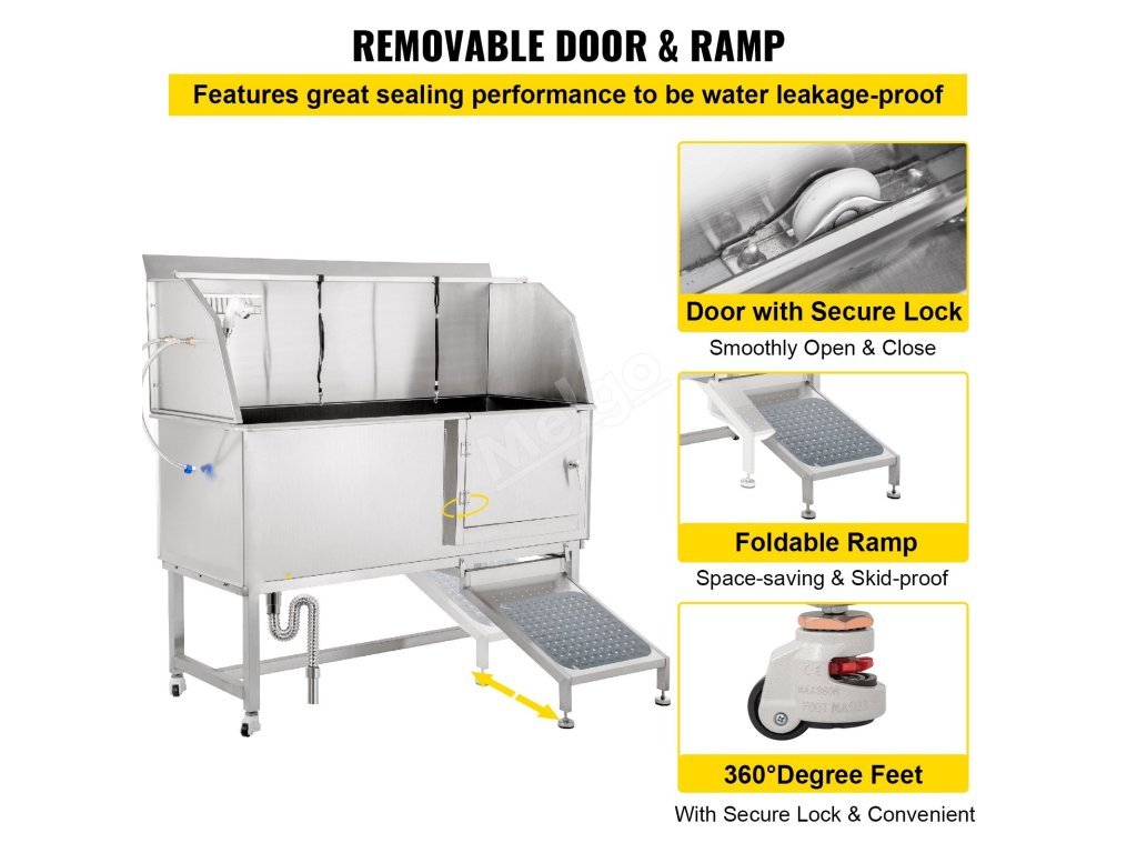 Lázeňská vana pro psy 62" 304 nerez, nosnost 661LBS, s rampou