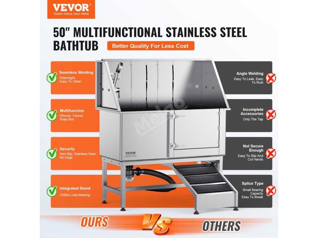 Lázeňský stůl pro psy 1,27 m z nerezavějící oceli s rampou a baterií
