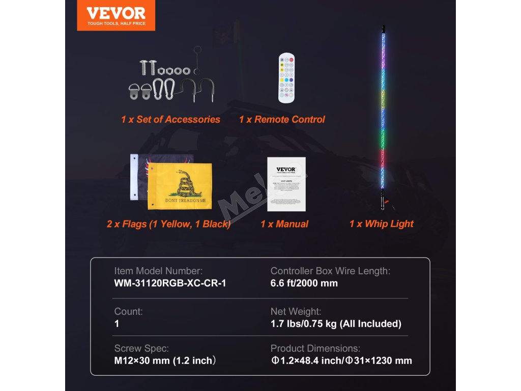 Ideální pro vozidla DC12V-24V včetně UTV, ATV, motocyklů, RZR, Can-ams, nákladních vozidel, terénních vozidel a motokár. Naše bičové světlo zajistí, že vaše vozidlo bude během nočních jízd a dobrodružství v terénu vynikat jako nejjasnější.