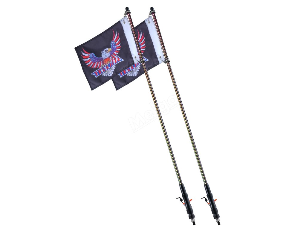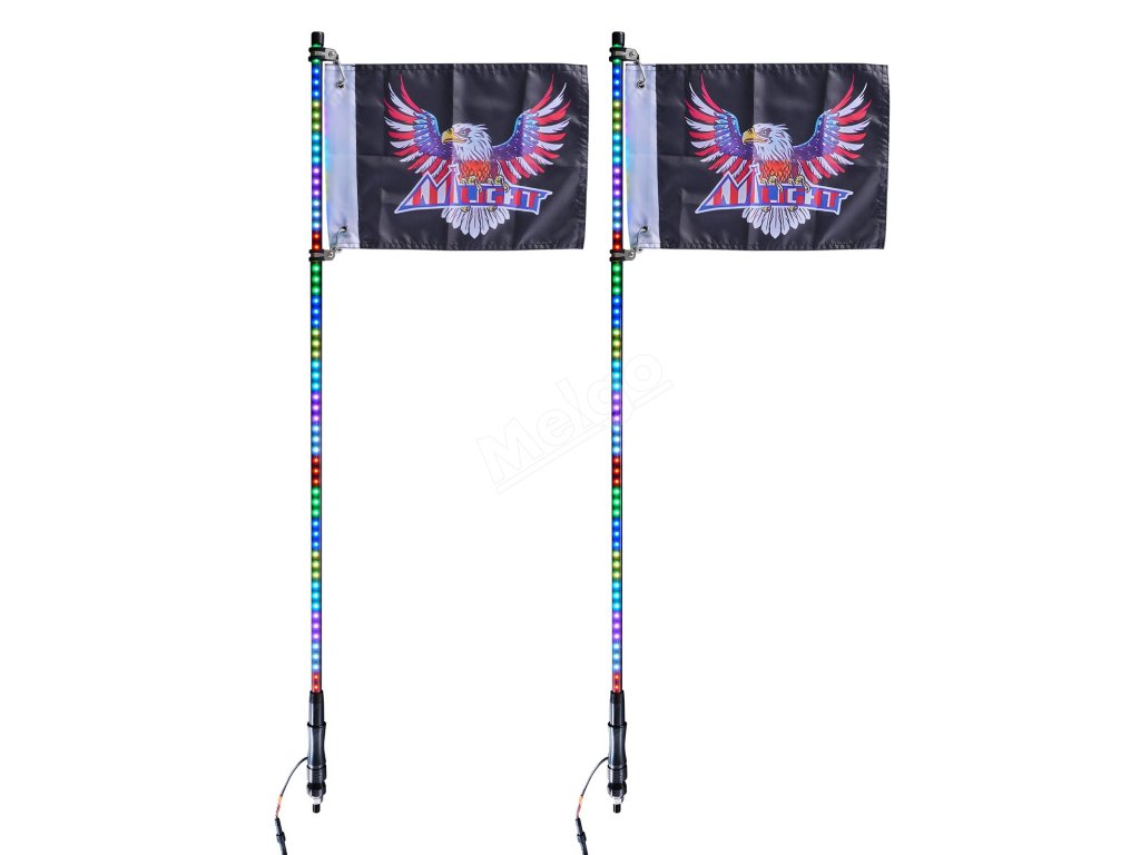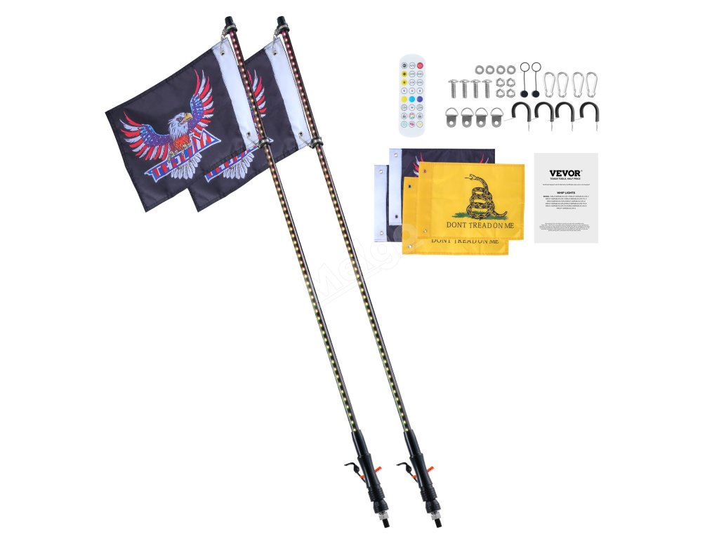 Led bičová světla 2 ks 3 ft app a rf ovládání vodotěsné rgb 4 vlajky