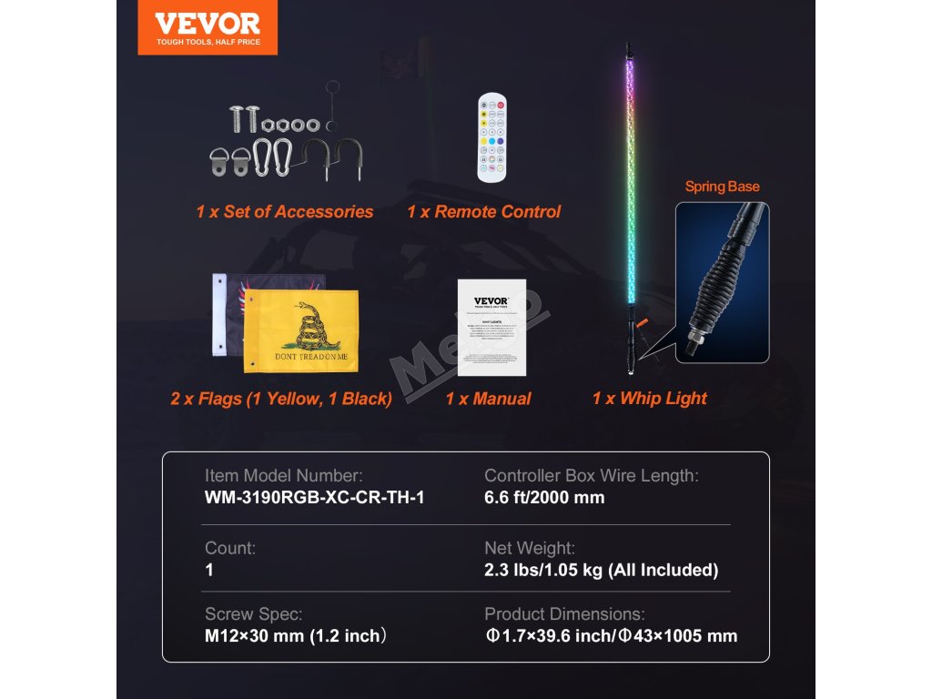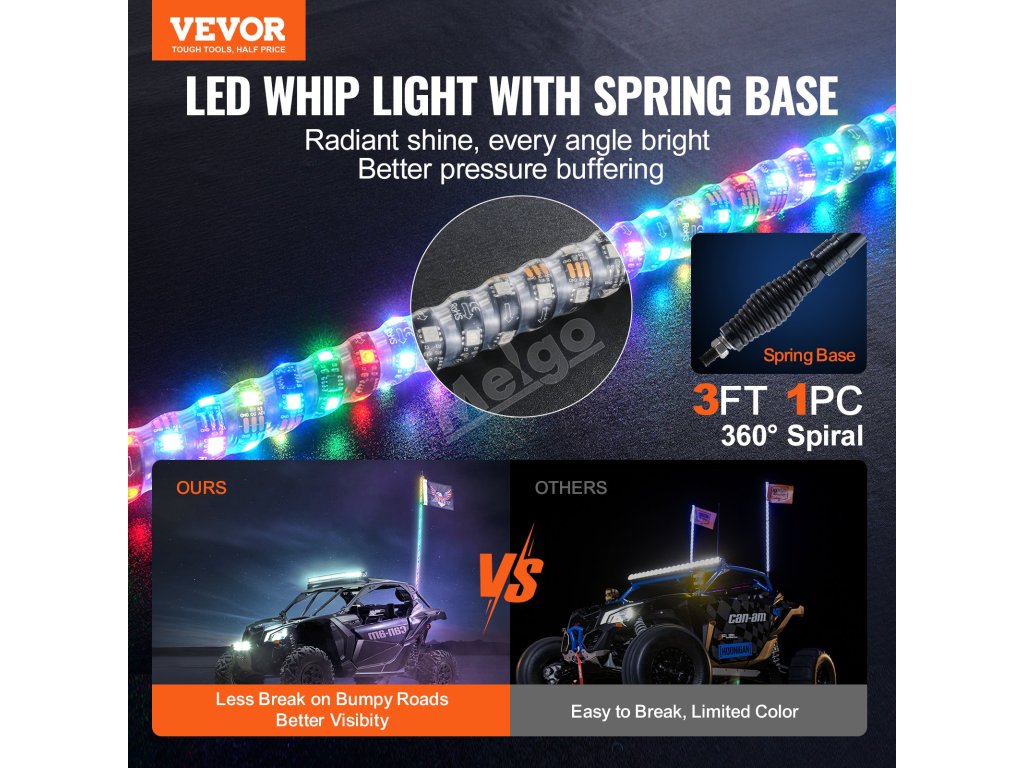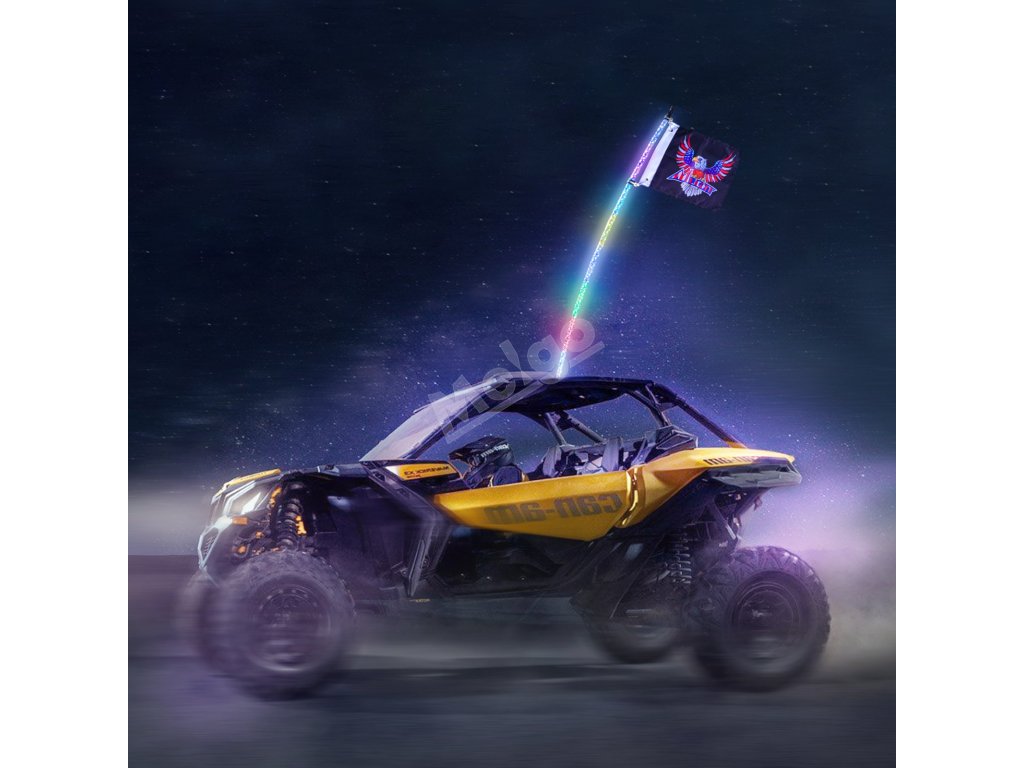 Ideální pro vozidla DC12V-24V včetně UTV, ATV, motocyklů, RZR, Can-ams, nákladních vozidel, terénních vozidel a motokár. Naše bičové světlo zajistí, že vaše vozidlo bude během nočních jízd a dobrodružství v terénu vynikat jako nejjasnější.