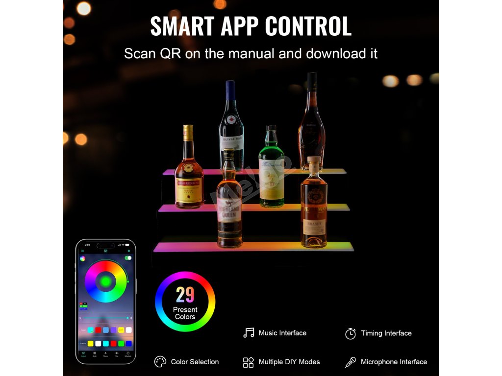 Led osvětlený stojan na láhve 3-posch., 24 Inch, RF+app, vícebarevné