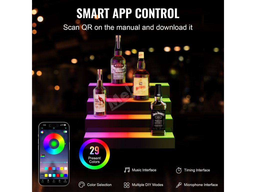 V porovnání s podobnými produkty dokáže náš produkt realizovat kontrolu aplikace. Na mobilním telefonu můžete nastavit zobrazení lahve s alkoholem. Kromě barev a režimů blikání můžete pro zábavu přehrávat také hudbu.