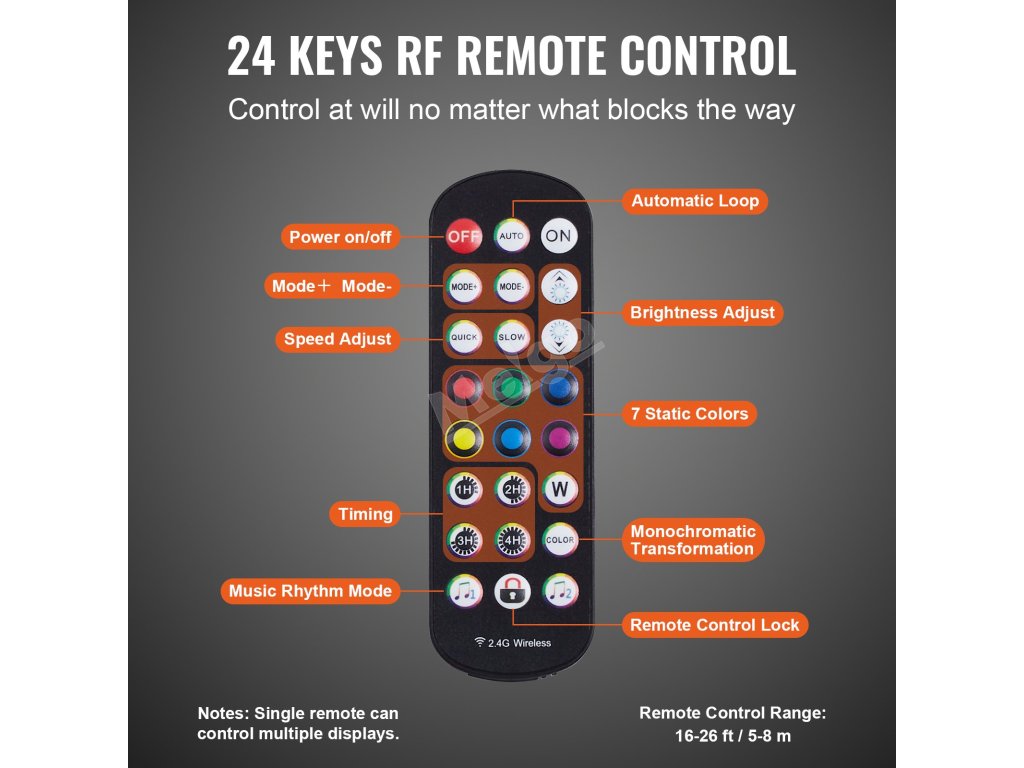 Naše dálkové ovládání používá místo infračerveného světla rádiovou komunikaci, která reaguje rychleji. Barvy a režimy barové police můžete ovládat ze vzdálených místností.