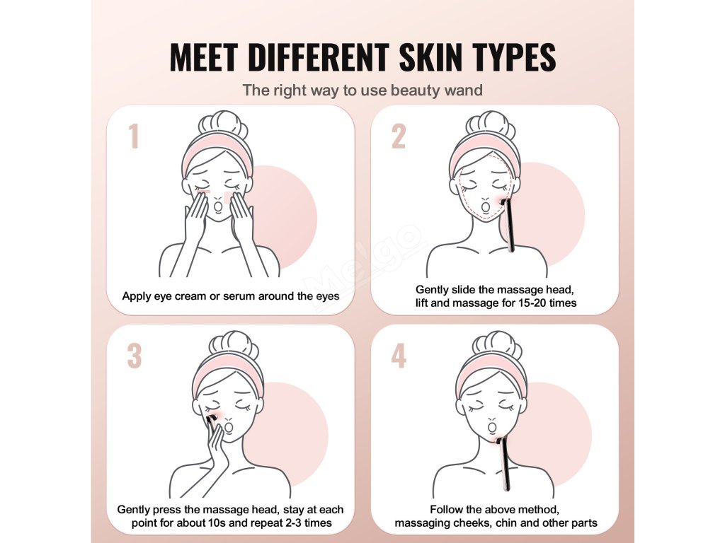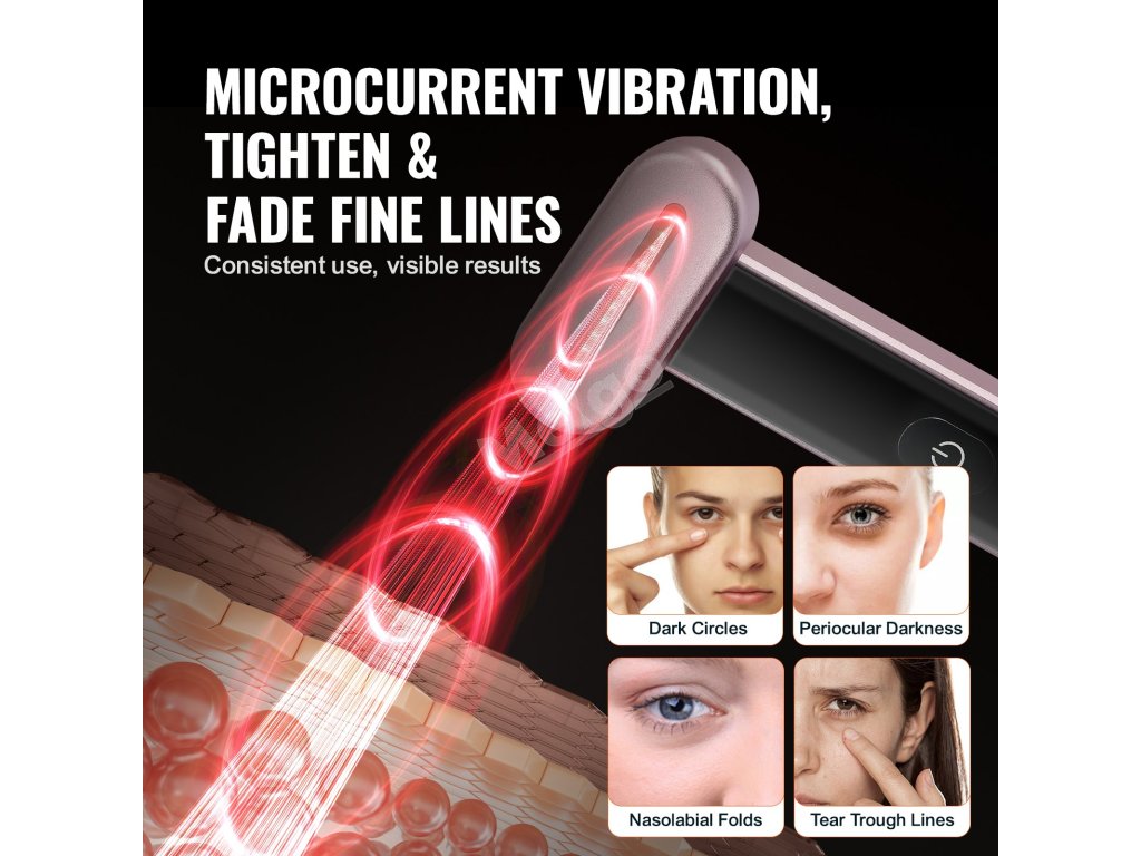 Prostřednictvím nepřetržité zahřívací terapie a vibrační mikroproudové masáže řešíme 4 hlavní problémy očního okolí, zrychlujeme krevní oběh, podporujeme mikrocirkulaci kolem očí, zmírňujeme oční tlak a účinně redukujeme tmavé kruhy.