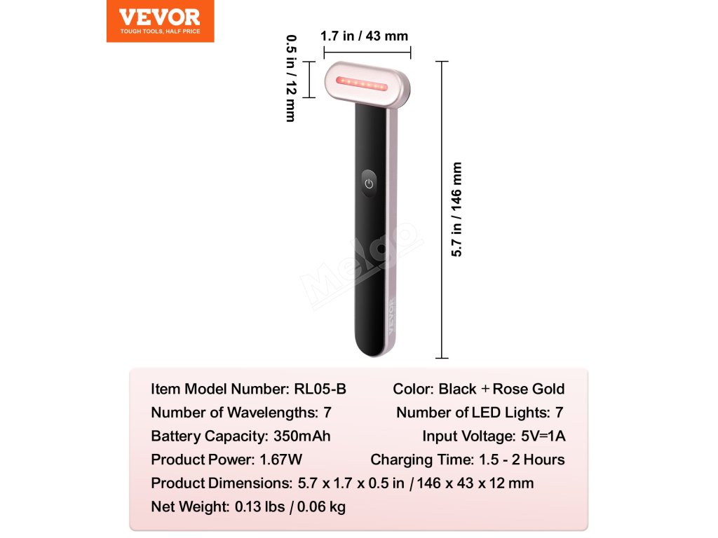 Zažijte dokonalou péči o pleť s terapeutickou hůlkou VEVOR s červeným světlem! Náš přístroj pro světelnou terapii LED kombinuje 7barevnou světelnou terapii LED, vibrační masáž mikroproudem a uklidňující zahřívací terapii, které bez námahy revitalizují pokožku obličeje a udržují bílou, pevnou, pružnou a plnou pleť.
