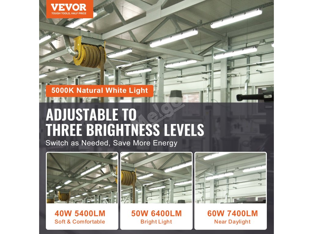 Užijte si nastavitelný jas 5400/6400/7400 lumenů, který se přizpůsobí vašim potřebám. Díky teplotě barev 5000K připomínající denní světlo a vodotěsnosti IP65 je ideální pro venkovní, polovýrobní a chladné prostředí, jako jsou parkoviště, mrazírny atd.
