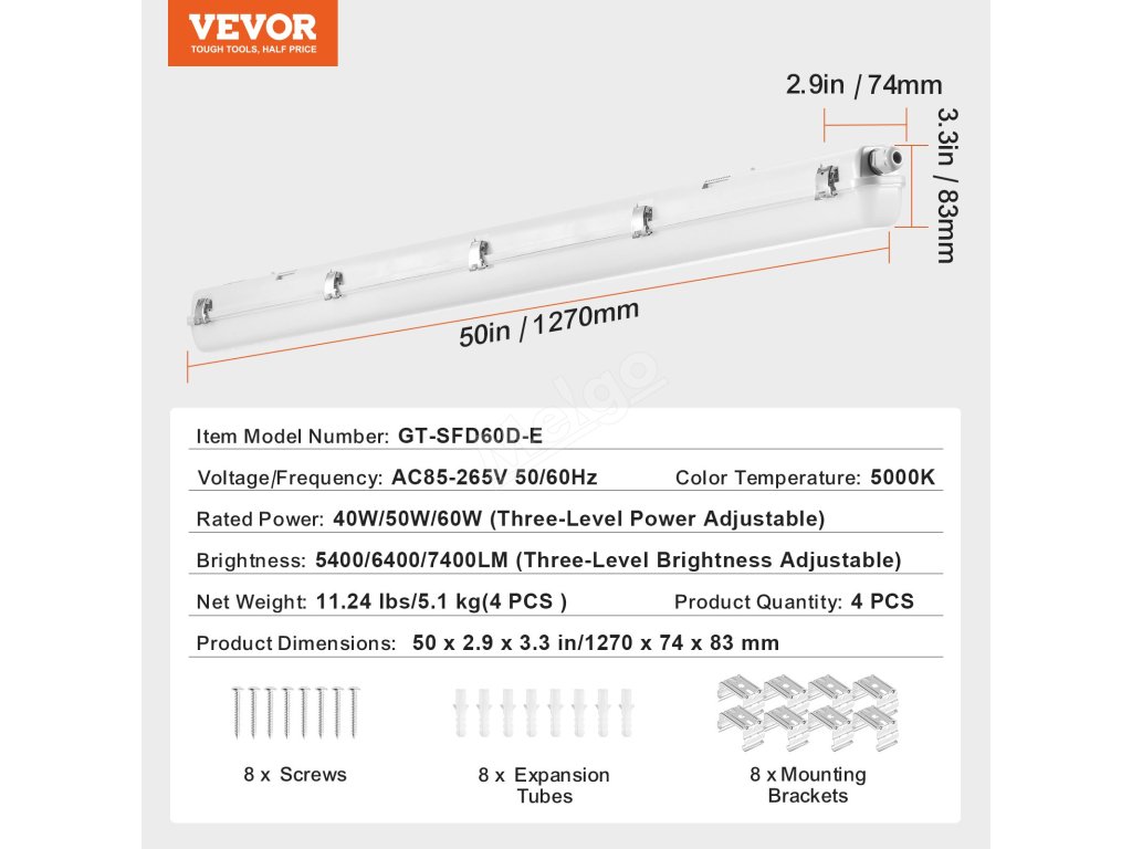 VEVOR 40W/50W/60W LED Vapor Tight Light