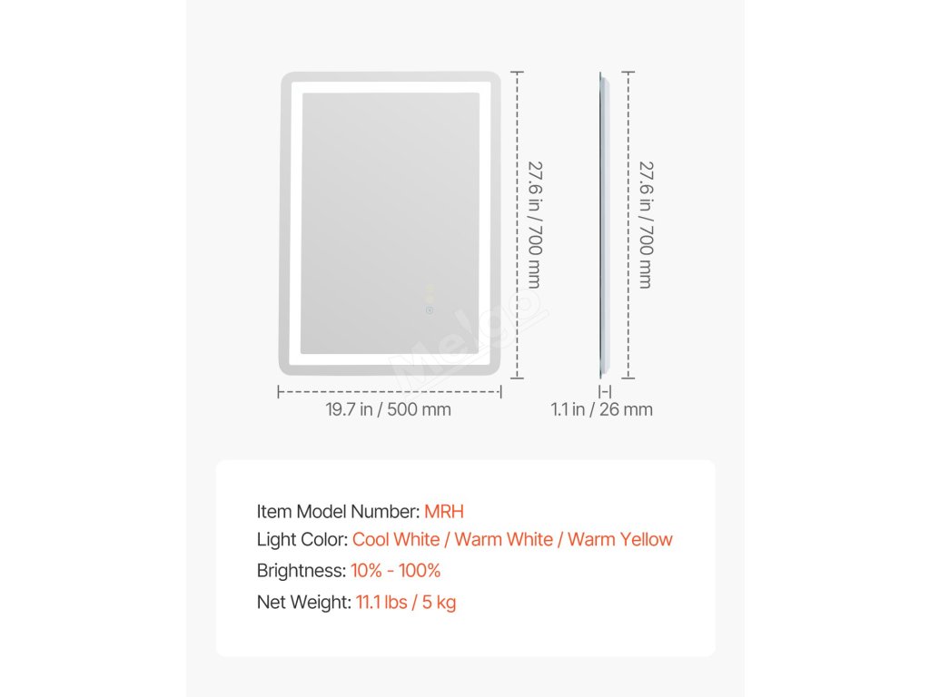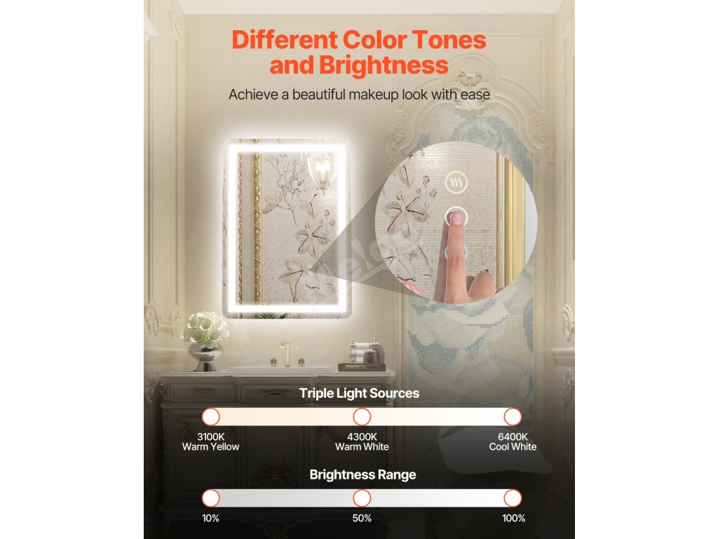Toto koupelnové zrcadlo s led osvětlením simuluje různé světelné atmosféry a umožňuje přepínat mezi studenou bílou, teplou bílou a teplou žlutou barvou a vytvořit tak dokonalé osvětlení pro přirozené líčení. Bez námahy splňuje potřeby osvětlení pro různé příležitosti.