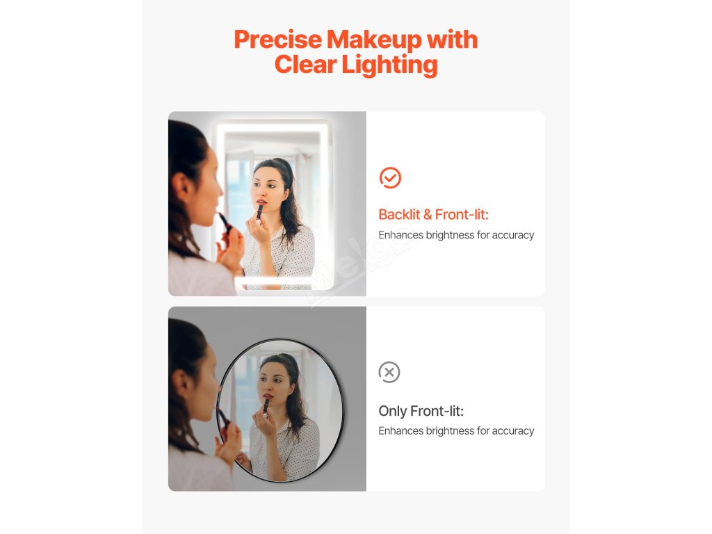 Toto osvětlené koupelnové zrcadlo se neomezuje pouze na domácí použití - bez problémů se hodí do salonů, hotelů, kanceláří a dalších veřejných prostor. Nabízí pohodlí a zároveň zvyšuje celkový styl a funkčnost každé místnosti.