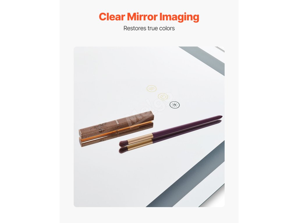 Povrchová úprava led zrcadla do koupelny s osvětlením obsahuje epoxidovou pryskyřici, která zabraňuje oxidaci a tmavnutí při dlouhodobém používání a udržuje povrch zrcadla v bezvadném stavu. Ve spojení se zadním panelem z hliníkové slitiny je odolný proti opotřebení a účinně zvyšuje stabilitu a trvanlivost.