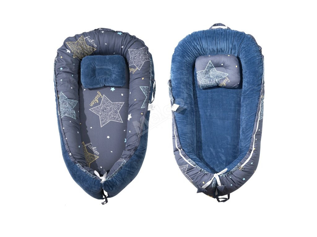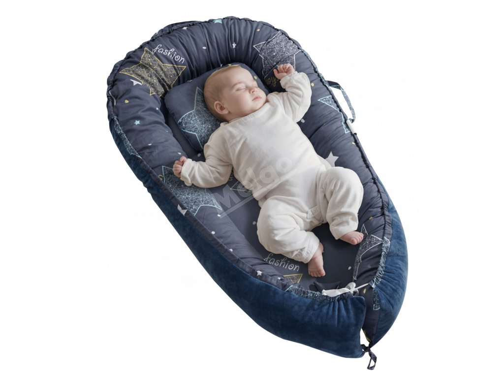 Lehátko pro novorozence 100% bavlna, opěrka hlavy, oboustranný potah