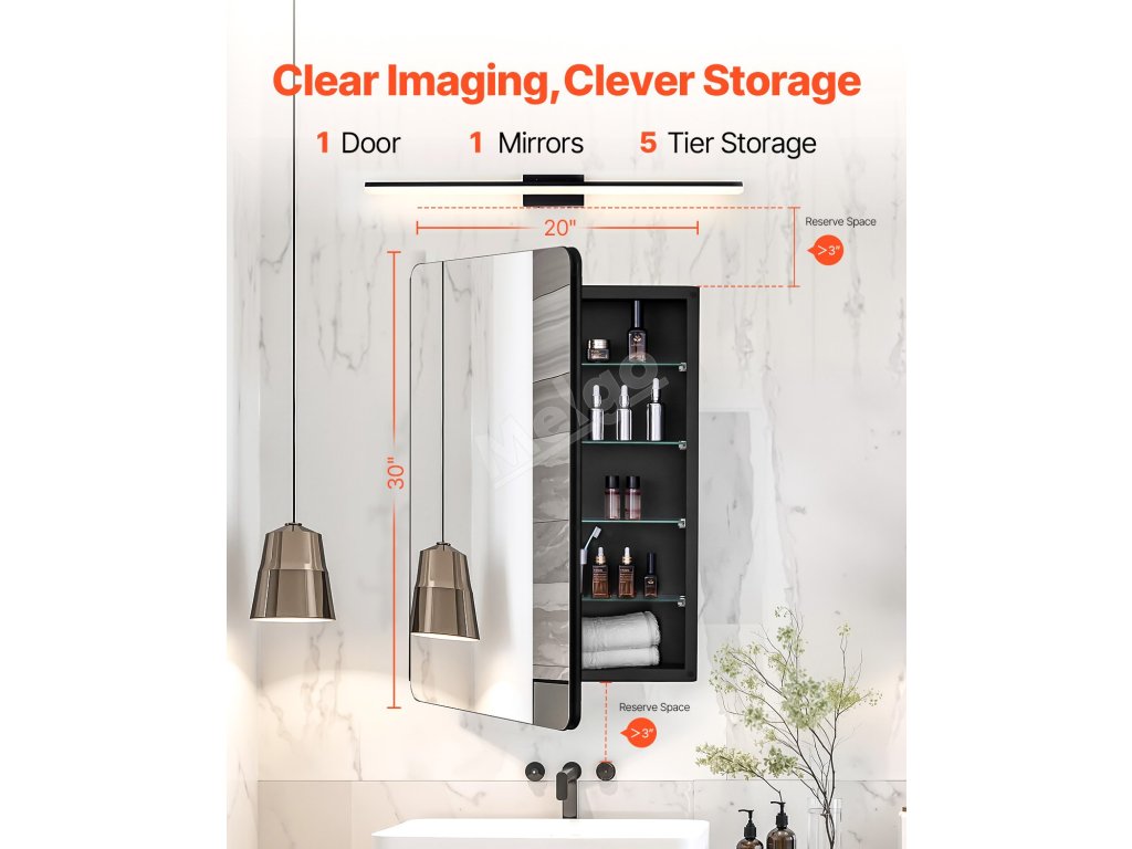 Podtrhněte krásu své koupelny a zároveň zajistěte jasný a jasný odraz v zrcadle pro snadnou péči o tělo. Díky flexibilním úložným možnostem vám tato zkosená lékárnička zpříjemní a zorganizuje každodenní rutinu.