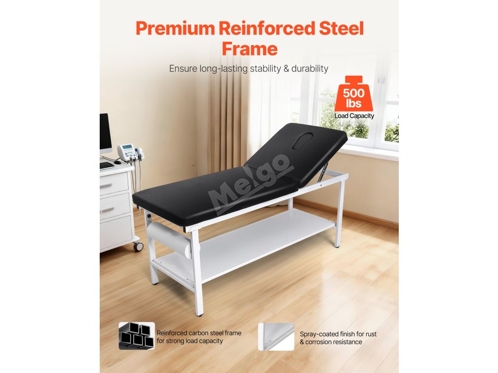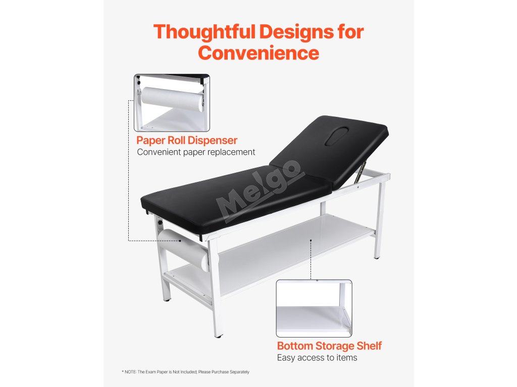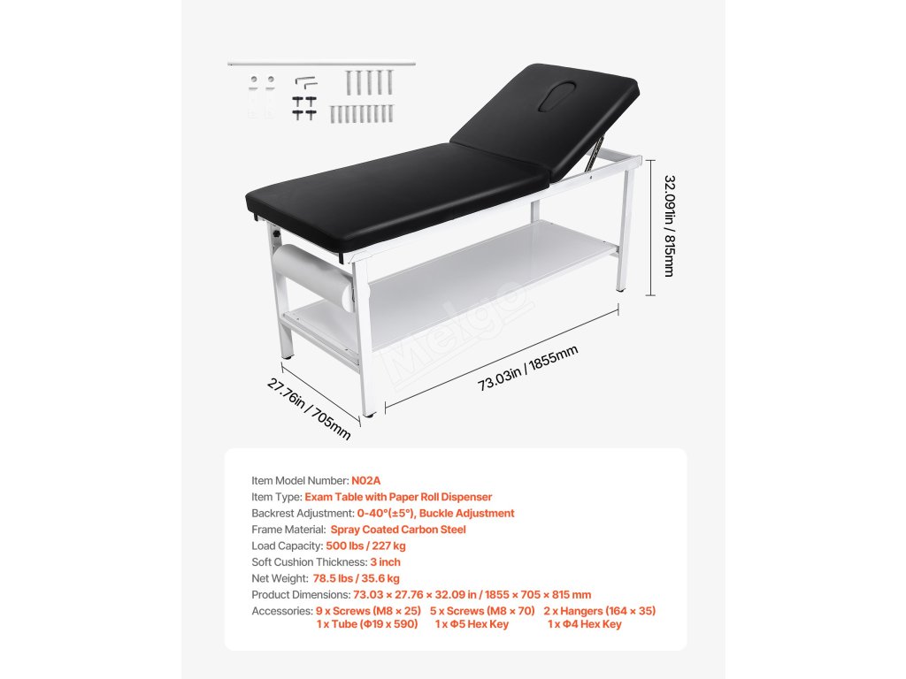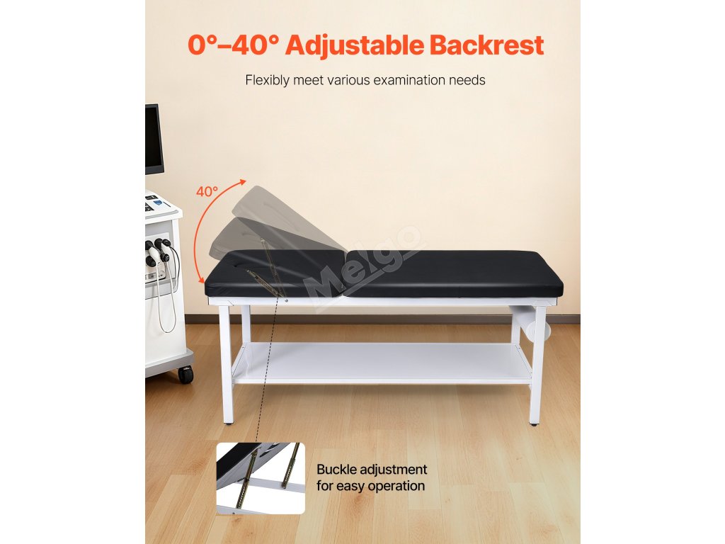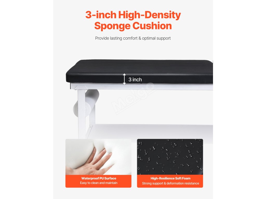 Tento lékařský vyšetřovací stůl má zesílený ocelový rám, 3palcový polštář z pěny s vysokou hustotou a opěradlo nastavitelné v rozsahu 0°-40° pro optimální oporu. Spodní odkládací polička a konstrukce držáku na role papíru mu dodávají velké pohodlí, takže je ideální pro kliniky, rehabilitační centra a kosmetická studia.