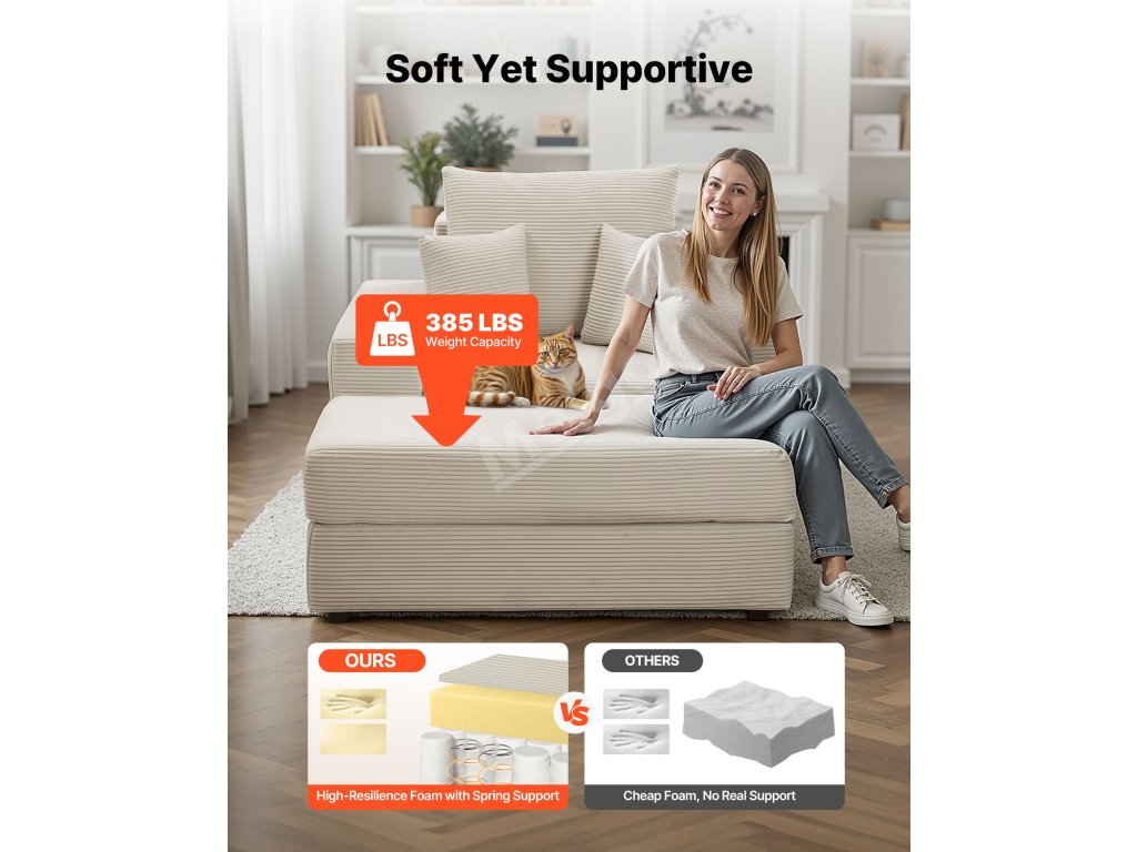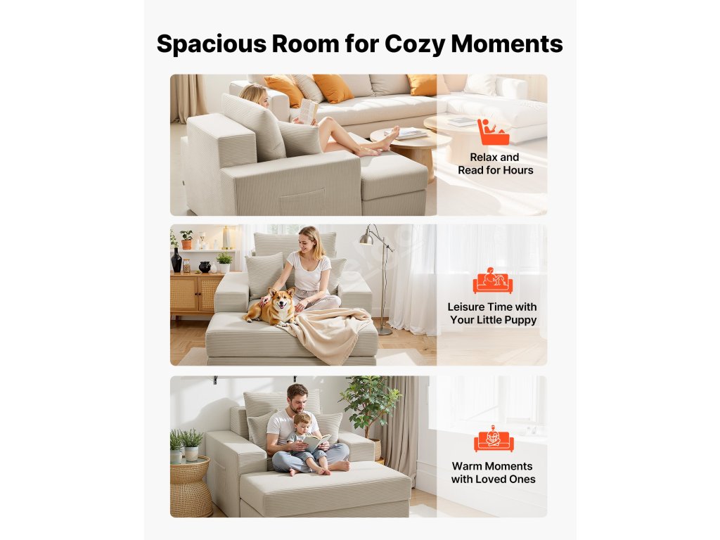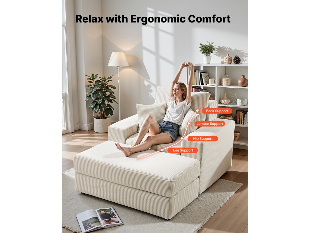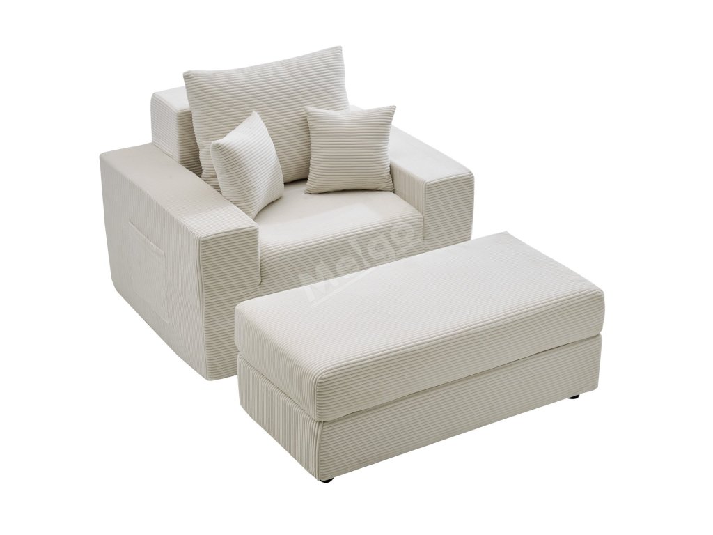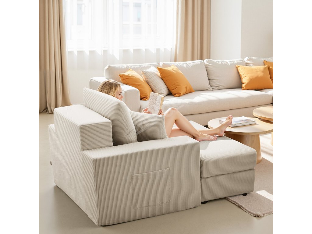 Lenoška 1115 mm modulární bez rámu, kordurová, s polštáři, béžová