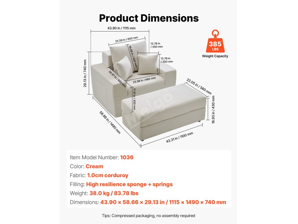 | Fabric | 1.0cm corduroy |