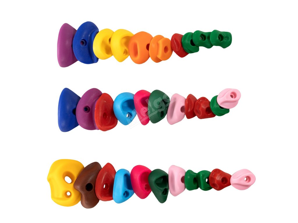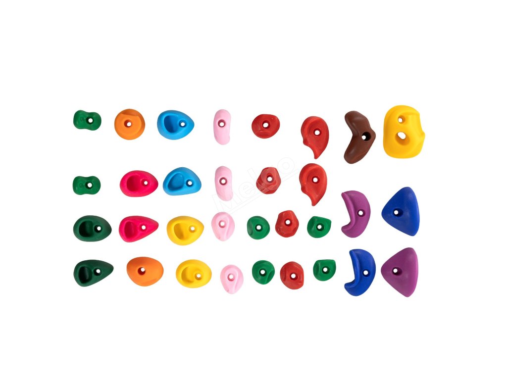 Lezecké chyty 32 ks, různé velikosti, barevné, s lanem a montáží
