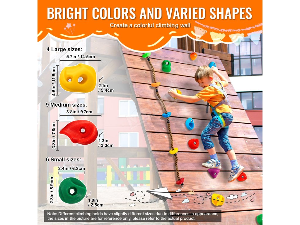 Lezecké skály poskytnou vašim malým dobrodruhům bezpečný a vzrušující zážitek z lezení. Jsou vyrobeny z neklouzavého, odolného a vysoce kvalitního PP kopolymeru a jsou dostatečně pevné, aby unesly až 230 kg, čímž zajišťují bezpečnost vašeho dítěte během hry.