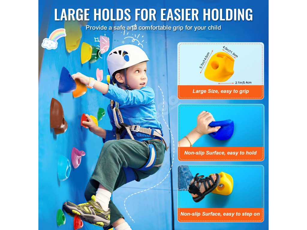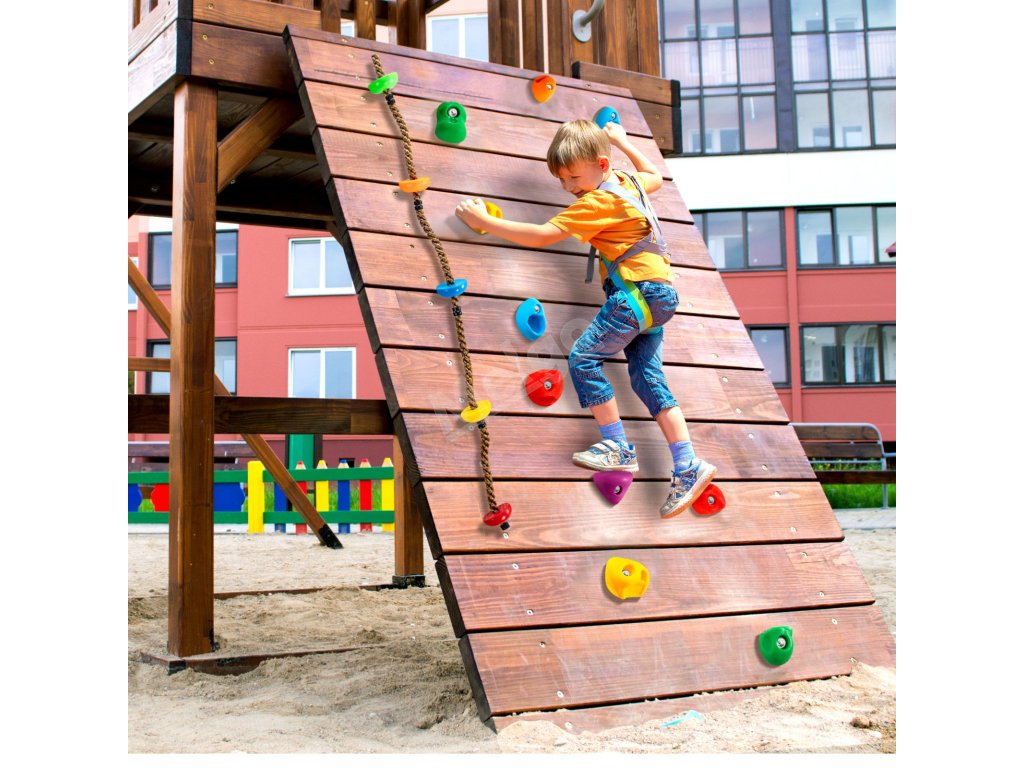Díky ergonomickým tvarům, hladkým křivkám a protiskluzovému povrchu se naše lezecké chyty dětem snadno drží a lezou na nich, což zabraňuje zraněním a zpříjemňuje lezení.
