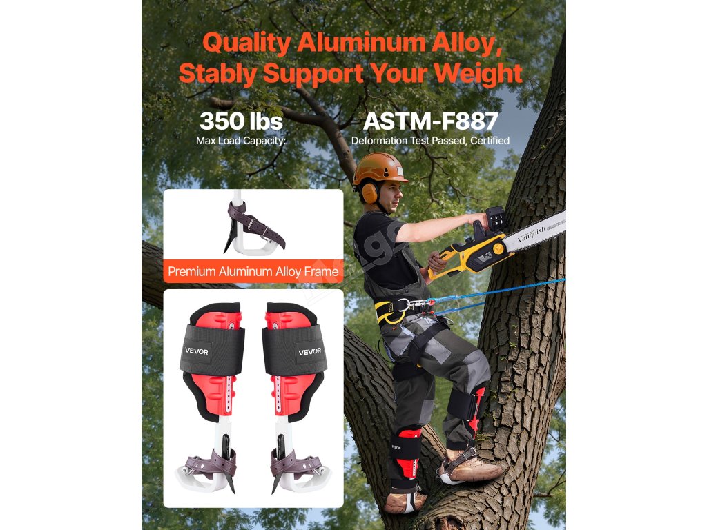 Sada hrotů na šplhání po stromech vyrobená z odolné oceli unese až 350 kg. Je testována podle normy ASTM F887 na odolnost a zajišťuje bezpečnost při každém lezení.