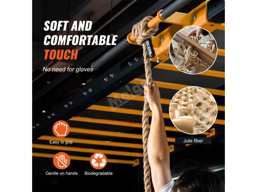 Toto lano na cvičení v tělocvičně vyrobené z čistě přírodních rostlinných vláken je vysoce odolné proti oděru, snadno se drží a není náchylné k vyklouznutí. Je také měkké, což zaručuje, že vás z něj nebudou bolet ruce ani po delším používání, a zároveň je příjemné na dotek.