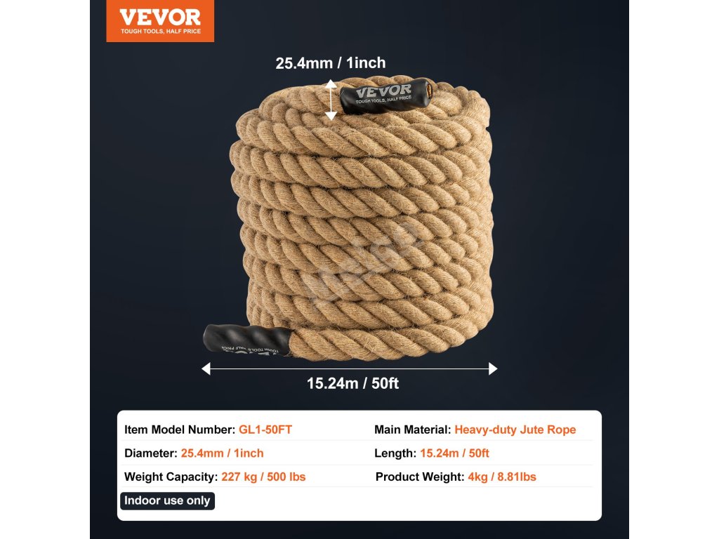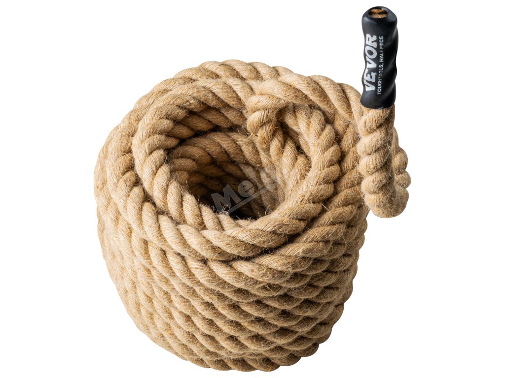 Toto cvičební lano je vyrobeno z prvotřídního vysokopevnostního jutového materiálu, je silné a robustní a vydrží vysoce intenzivní tahy a zatížení. Vhodné pro použití při soutěžích v přetahování lanem bez obav z přetržení. Upozorňujeme, že by se měl používat v suchém prostředí, nejlépe v interiéru.