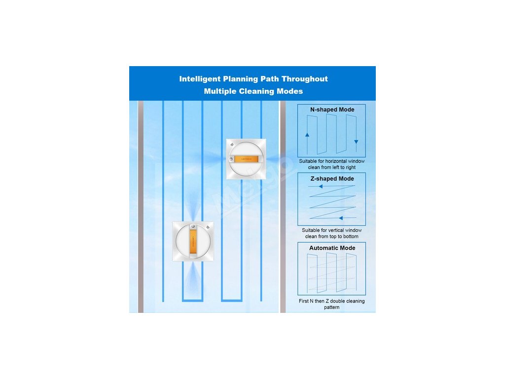 | Specifikace | Vstupní napětí: Napětí adaptéru: AC110-240V, 50/60Hz Napětí adaptéru: 24V, 3A Jmenovitý výkon: 72 W Nádrž na vodu: bezkartáčový motor Hluk: 70 dB Rychlost čištění: 3,5 min/m² Vestavěná baterie: 650 mAh Režim řízení: 2.4G Detekce hran: režim čištění: automatický (bezrámové sklo) Režim čištění: 3 typy (N/Z, N a Z) |