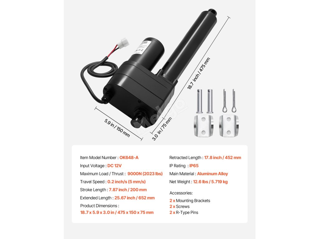 12V lineární pohon VEVOR pro vysoké zatížení nabízí výkonnou vertikální zvedací sílu 2023 lbs a horizontální tlačnou sílu, takže bez námahy zvládne širokou škálu těžkých úkolů s vysokou účinností a přesností.