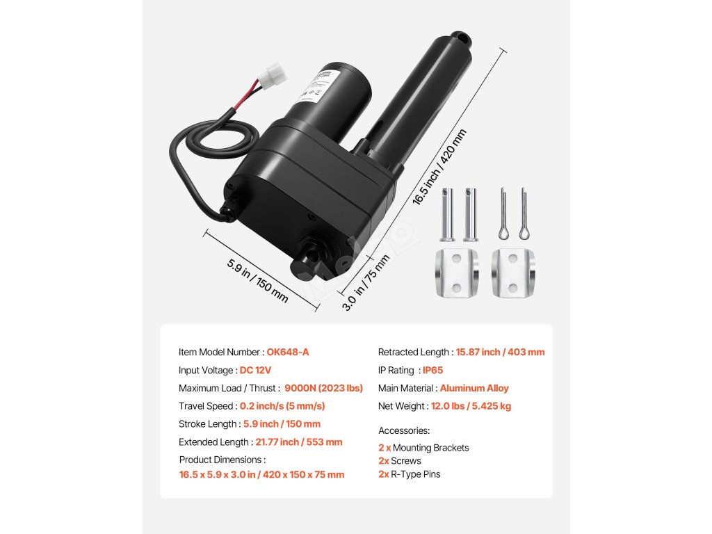 12V lineární pohon VEVOR pro vysoké zatížení nabízí výkonnou vertikální zvedací sílu 2023 lbs a horizontální tlačnou sílu, takže bez námahy zvládne širokou škálu těžkých úkolů s vysokou účinností a přesností.
