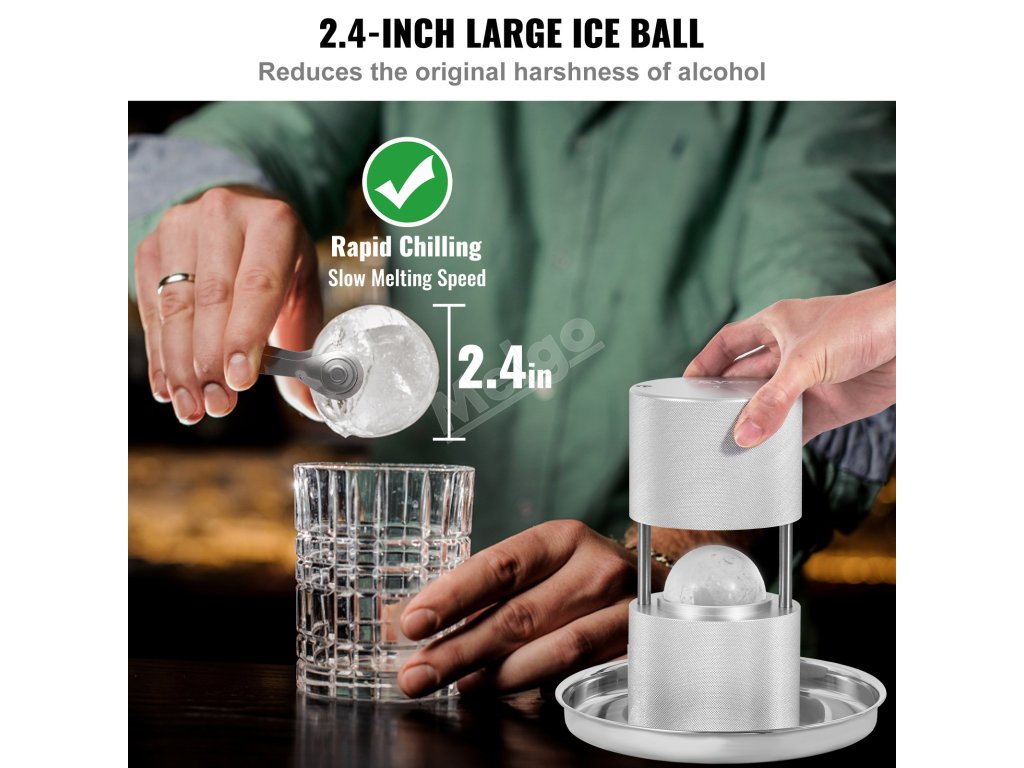 Profesionální barový nástroj, který se snadno používá a dokáže rychle vyrobit ledové koule, které přinášejí jedinečný vizuální efekt a zvýrazňují vůni a bohatou chuť kvalitních vín.