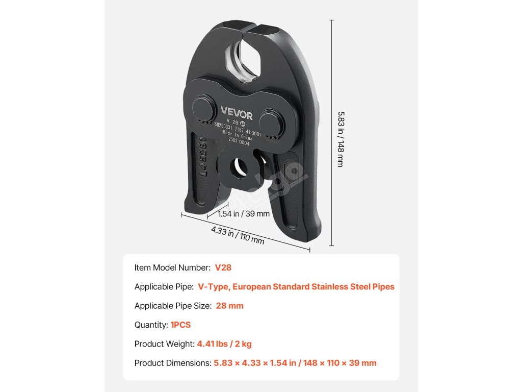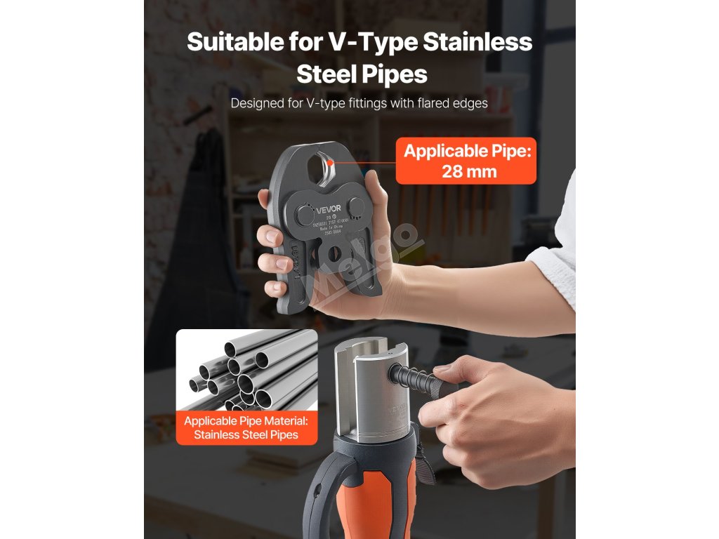 Dosáhněte přesného lisování a bezpečných spojů trubek pomocí lisovacích čelistí VEVOR 28 mm, které jsou určeny pro evropské standardní trubky z nerezové oceli typu V. Tyto lisovací čelisti jsou kompatibilní se standardními elektrickými lisovacími nástroji a představují efektivní řešení pro různé aplikace na potrubí.