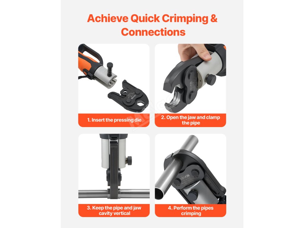 Vhodné pro evropské standardní nerezové trubky typu V a tvarovky typu V, které potřebují rozšířené hrany pro zajištění správného, přesného a bezpečného krimpování a spojování.